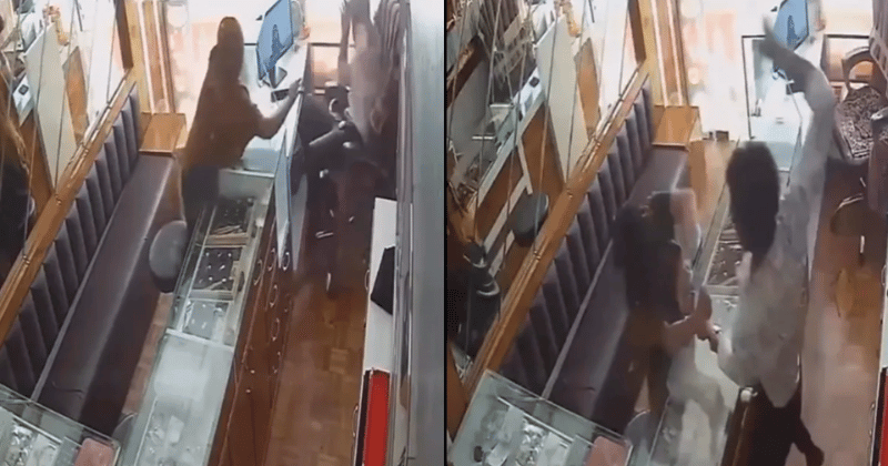આંખ માં મરચાં નો પાવડર નાખી ને લૂટવા નો હતો પ્લાન, ઝવેરીએ 20 સેકંડ માં 20 ધપડ માર્યા, જુઓ વિડિયો અહી