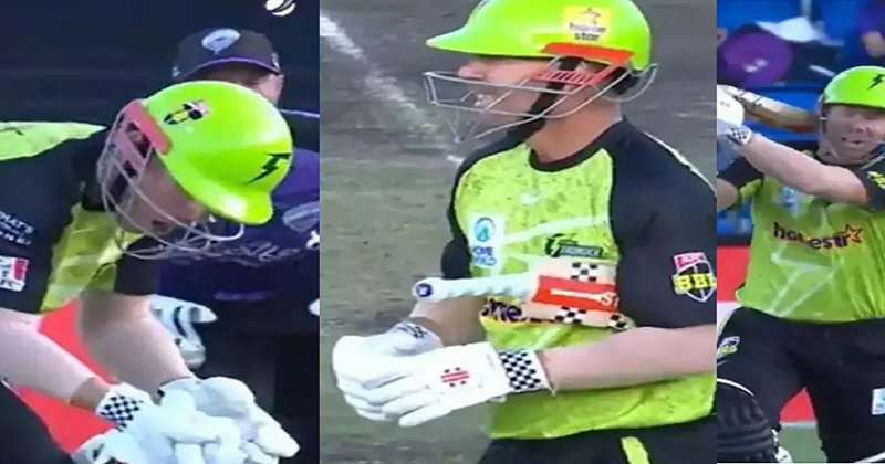 ક્રિકેટના મેદાનમાં અમુક એવી ઘટના બને છે કે જેને જોઈને સમજાતું નથી કે તેના પર હસવું કે ખેલાડી માટે અફસોસ કરવો જોઈએ. કંઈક આવો જ નજારો બિગ બેશ લીગમાં પણ જોવા મળ્યો, જ્યાં પોતાના જ બેટે બેટ્સમેનને દગો આપ્યો. શોટ રમત જ બેટ તૂટીને હાથમાં લટકી ગયો અને માથા પર ઈજા થઈ તે પાછી નફાની. આ વિચિત્ર ઘટના સિડની થંડર્સ અને હોબાર્ટ હરિકેન્સ વચ્ચે રમતી મેચમાં બની છે.